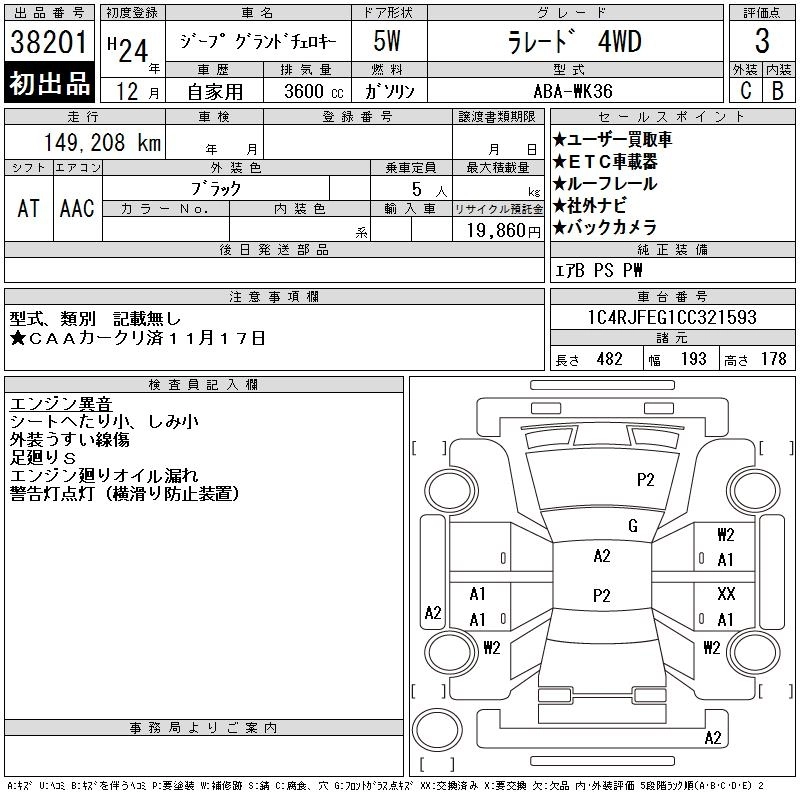 JEEP GRAND CHEROKEE 2012 г., лот № 38201