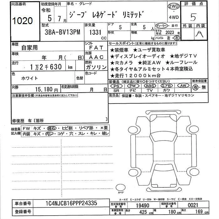 JEEP RENEGADE 2023 г., лот № 1020