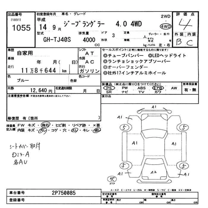 Год выпуска2002 Пробег 119 000 км КузовTJ40S Комплектация4.0 4WD