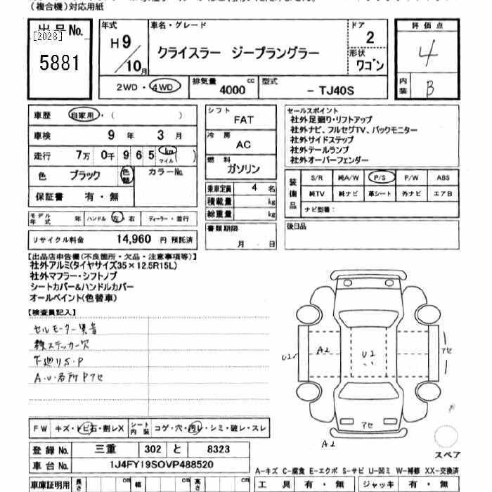 JEEP WRANGLER 1997 г., лот № 5881
