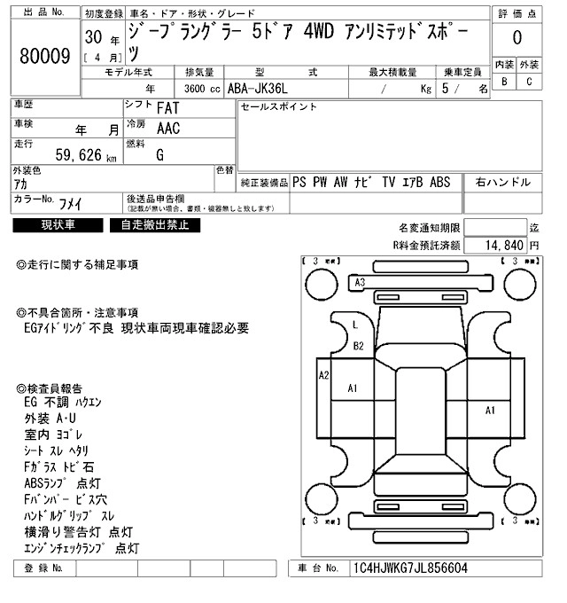JEEP WRANGLER 2018 г., лот № 80009