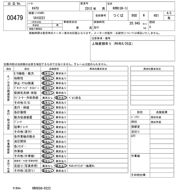 Статус выставлен на аукцион Лот 479 Аукцион ARAI Kenki Дата аукциона 09.12.2025