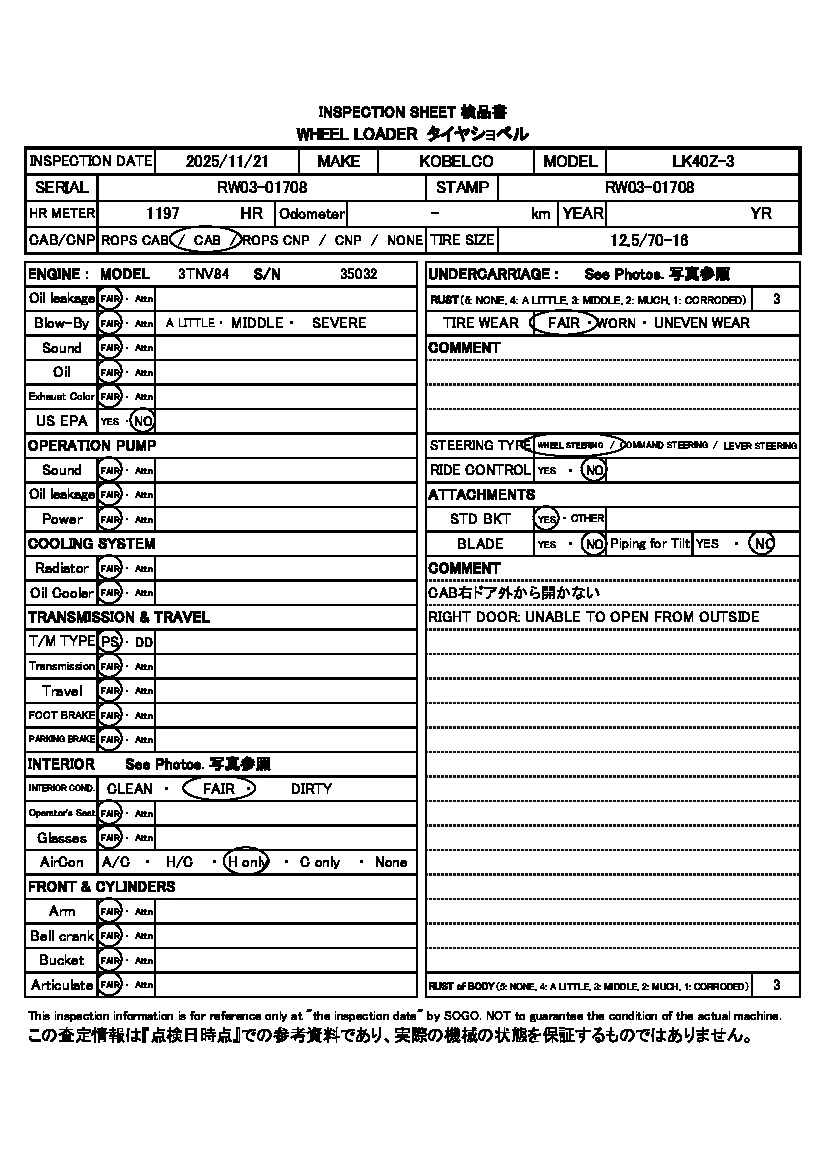Год выпуска2007 КузовLK40Z-3 Комплектация TIRESHOVEL