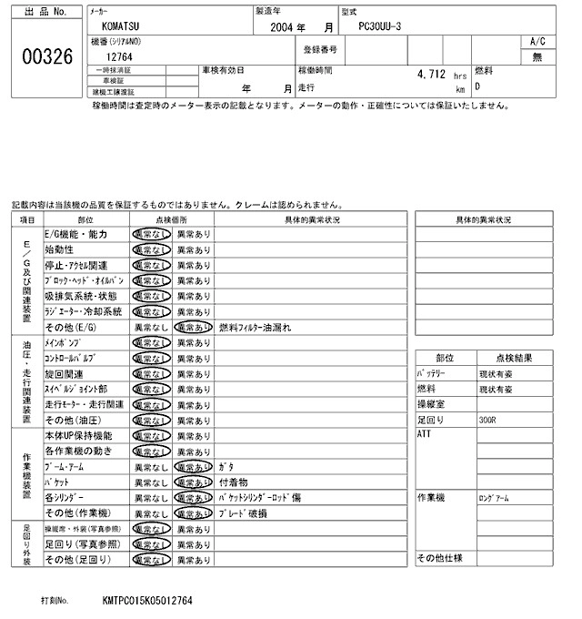 KOMATSU OTHER 2004 г., лот № 326
