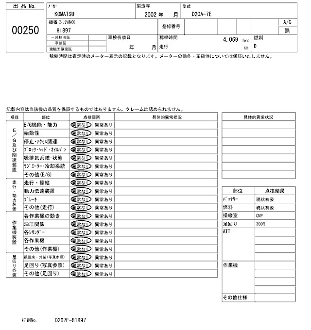 KOMATSU OTHER 2002 г., лот № 250