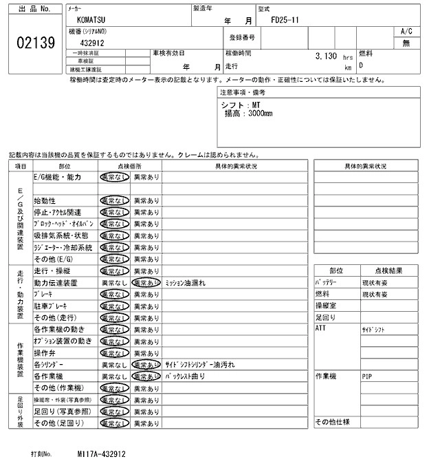Статус выставлен на аукцион Лот 2139 Аукцион ARAI Kenki Дата аукциона 10.03.2026