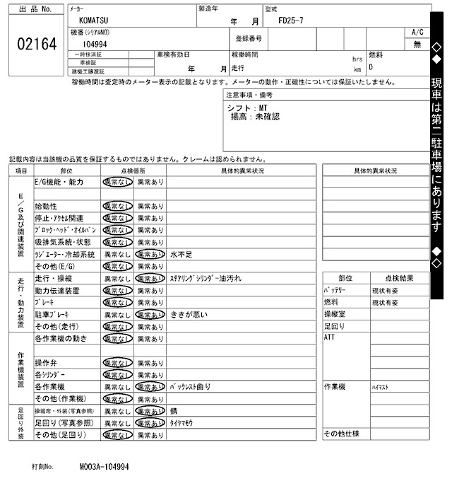 Статус выставлен на аукцион Лот 2164 Аукцион ARAI Kenki Дата аукциона 10.03.2026
