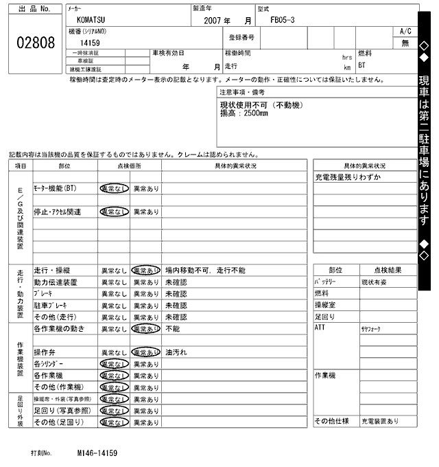Статус выставлен на аукцион Лот 2808 Аукцион ARAI Kenki Дата аукциона 10.03.2026