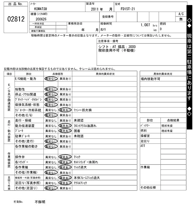 Статус выставлен на аукцион Лот 2812 Аукцион ARAI Kenki Дата аукциона 10.03.2026
