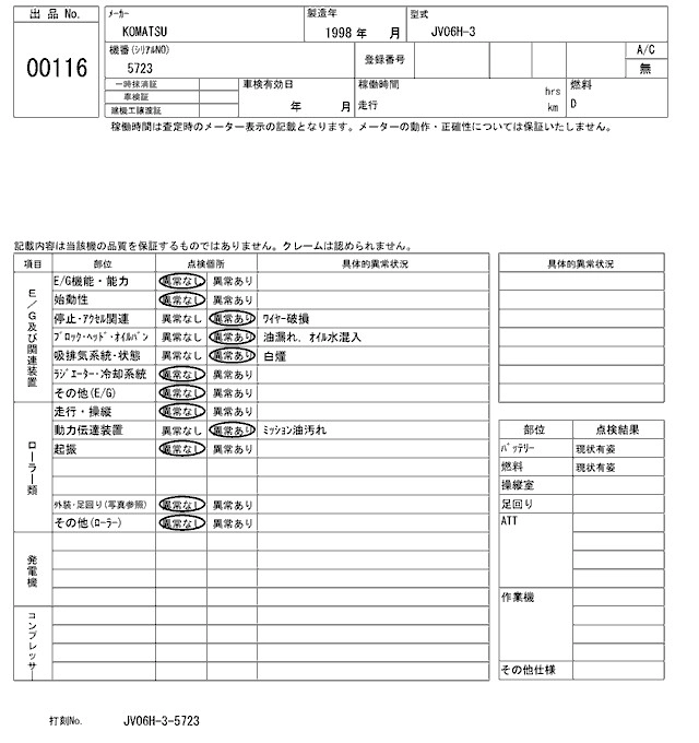 KOMATSU OTHER 1998 г., лот № 116