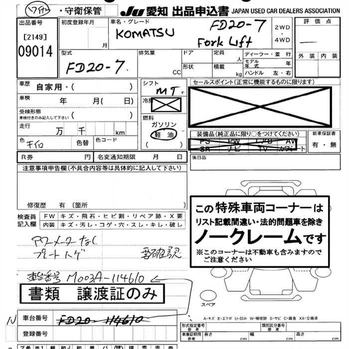 Статус выставлен на аукцион Лот 9014 Аукцион JU Aichi Дата аукциона 12.03.2026