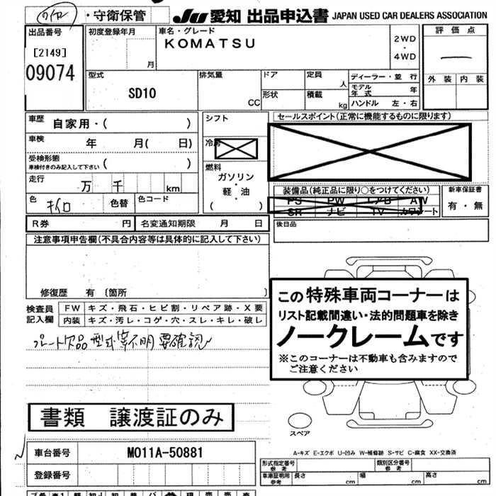 Статус выставлен на аукцион Лот 9074 Аукцион JU Aichi Дата аукциона 12.03.2026
