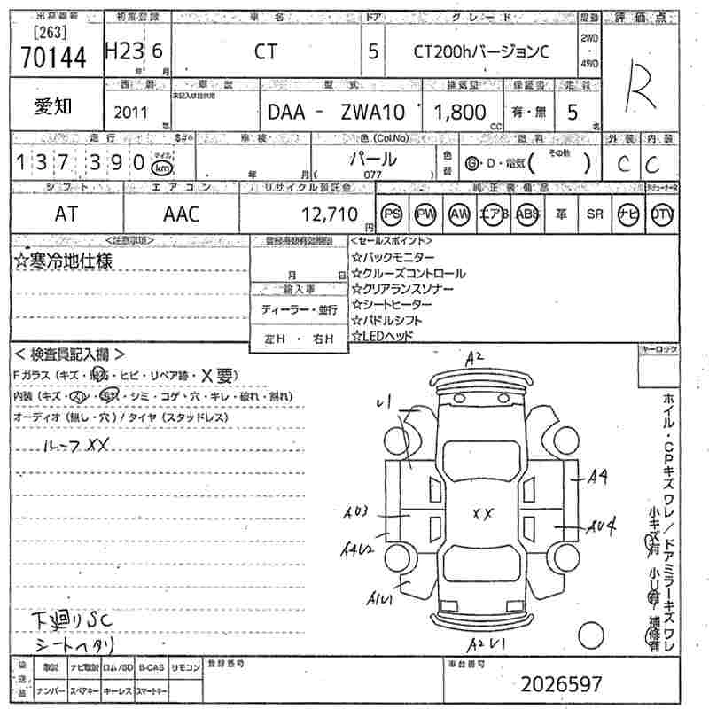 LEXUS CT 2011 г., лот № 70144