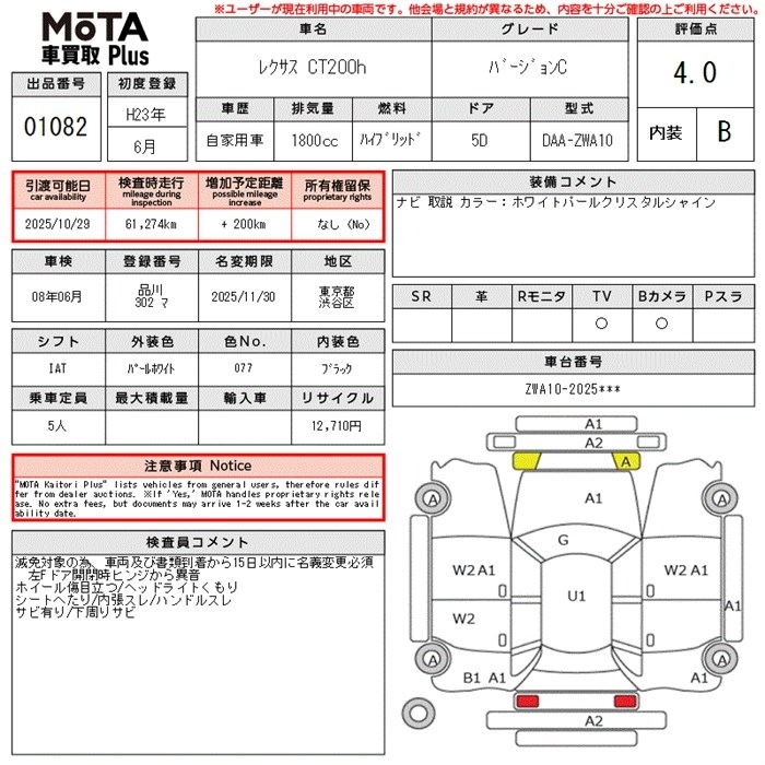 LEXUS CT 2011 г., лот № 1082