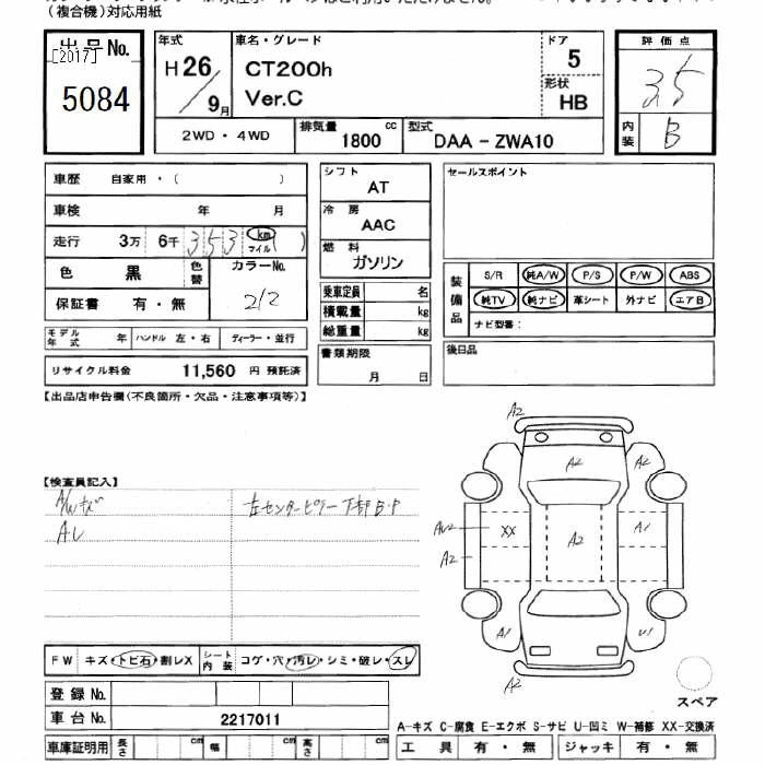 LEXUS CT 2014 г., лот № 5084