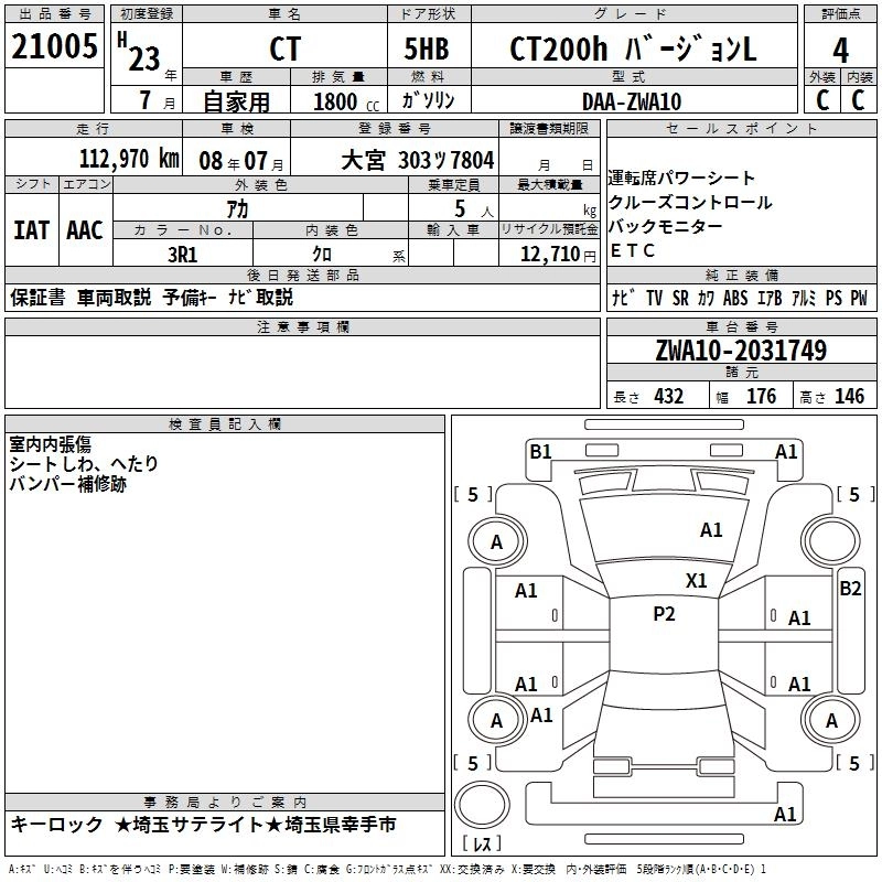 LEXUS CT 2011 г., лот № 21005