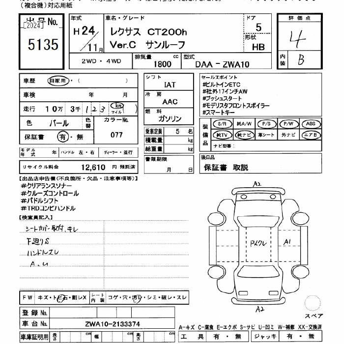LEXUS CT 2012 г., лот № 5135