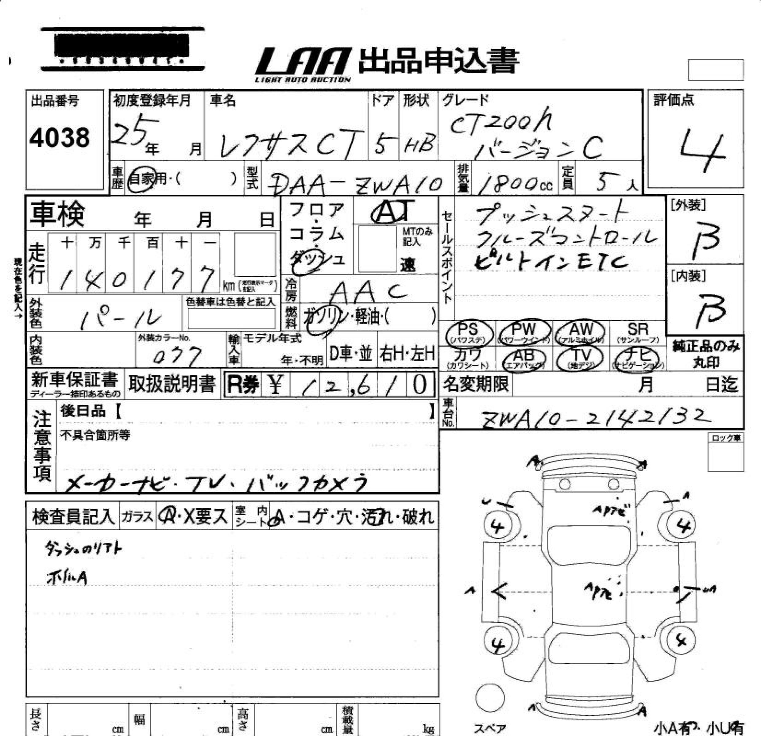 LEXUS CT 2013 г., лот № 4038