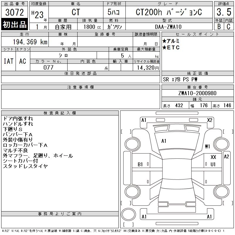 Год выпуска2011 Пробег 194 000 км КузовZWA10 КомплектацияCT200H VERSION C