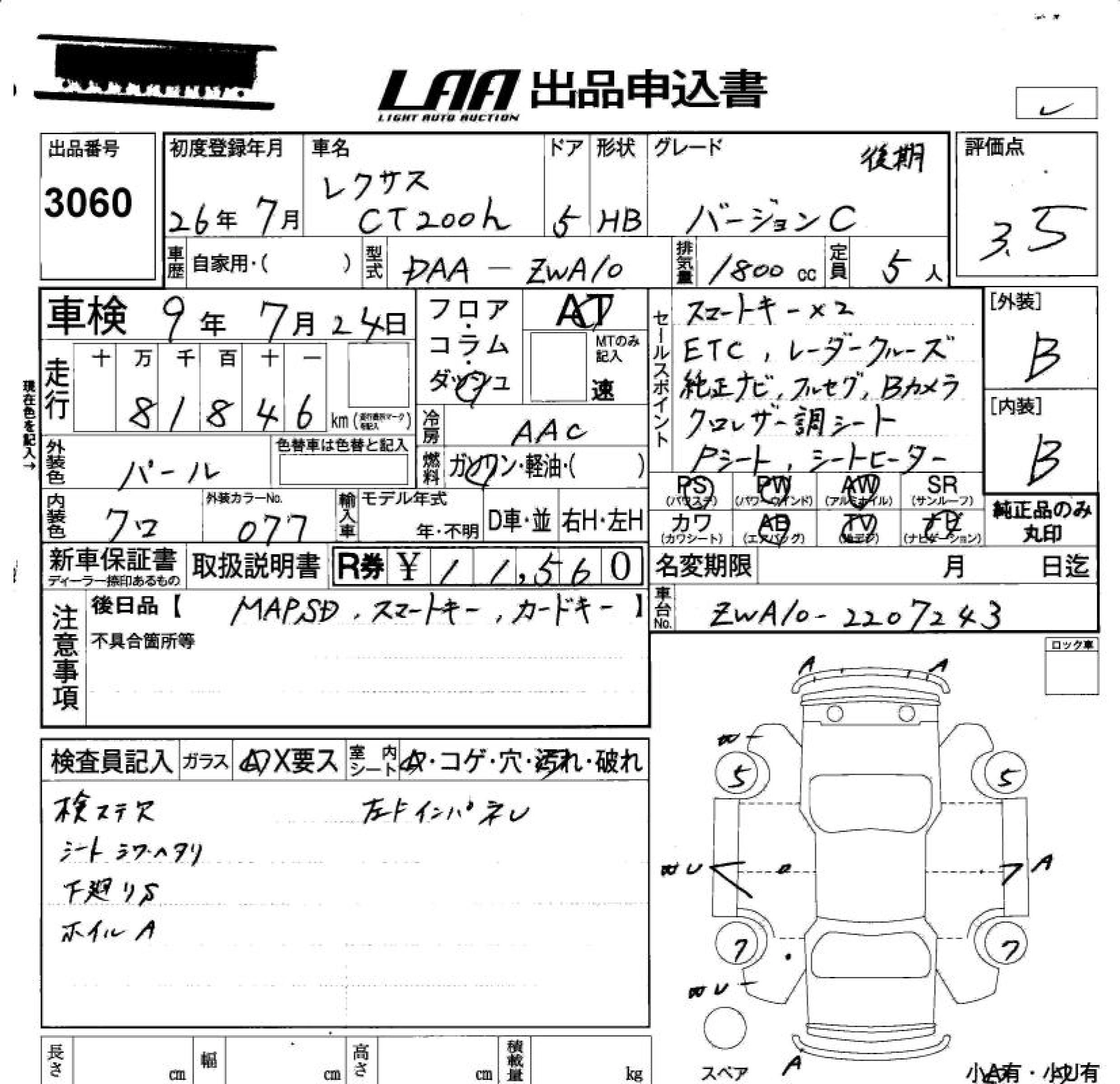 LEXUS CT 2014 г., лот № 3060