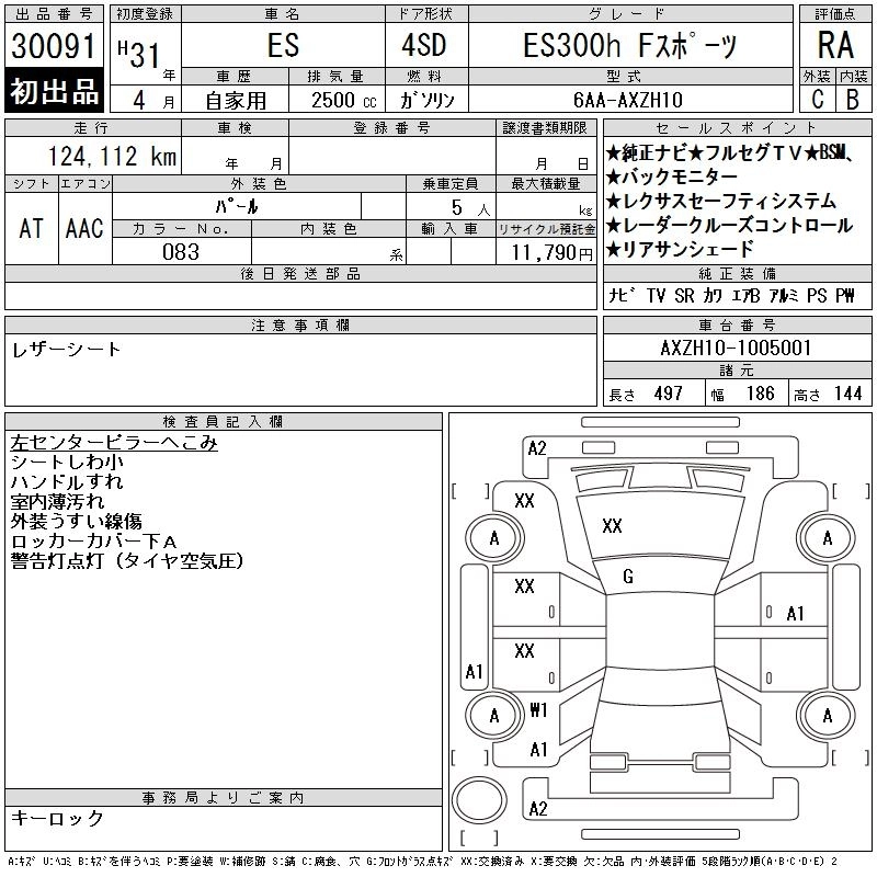 LEXUS ES 2019 г., лот № 30091