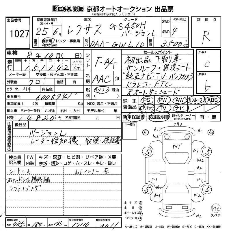 LEXUS GS 2013 г., лот № 1027