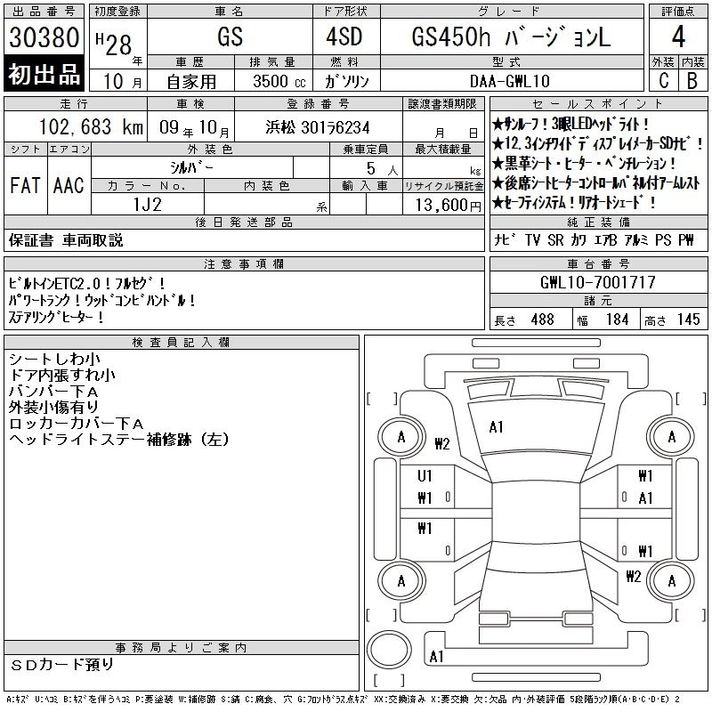 Год выпуска2016 Пробег 103 000 км КузовGWL10 КомплектацияGS450H VERSION L
