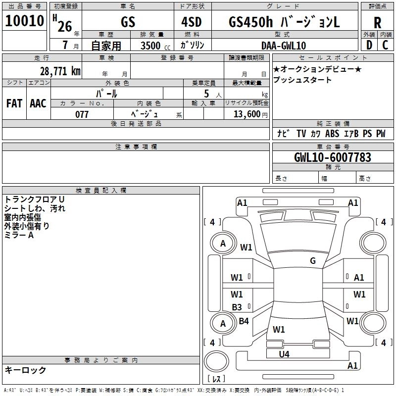 LEXUS GS 2014 г., лот № 10010