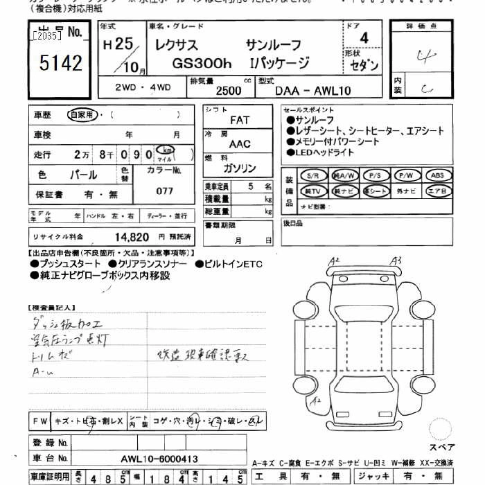 LEXUS GS 2013 г., лот № 5142