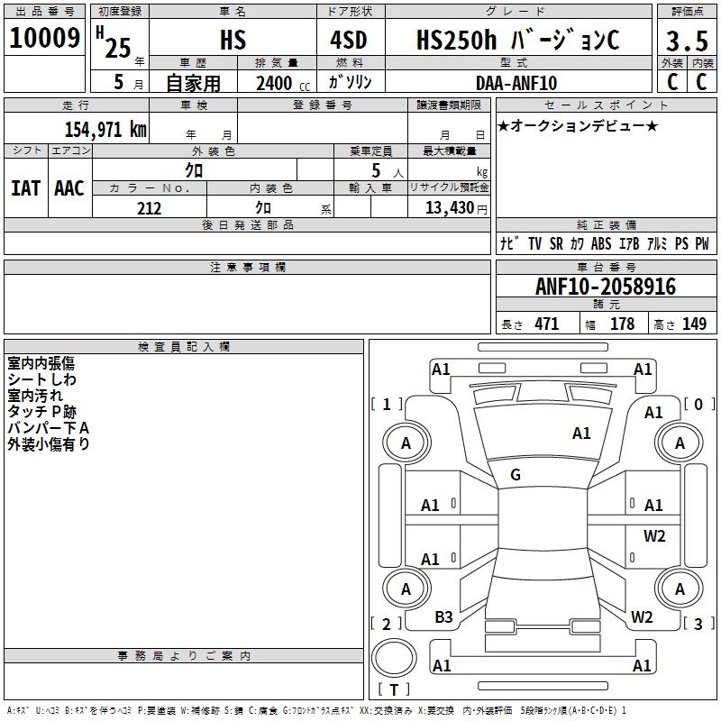 LEXUS HS 2013 г., лот № 10009