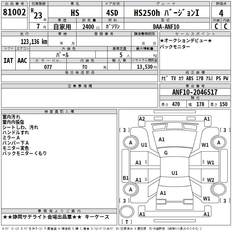 LEXUS HS 2011 г., лот № 81002