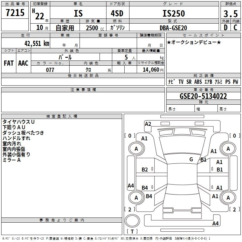 LEXUS IS 2010 г., лот № 7215
