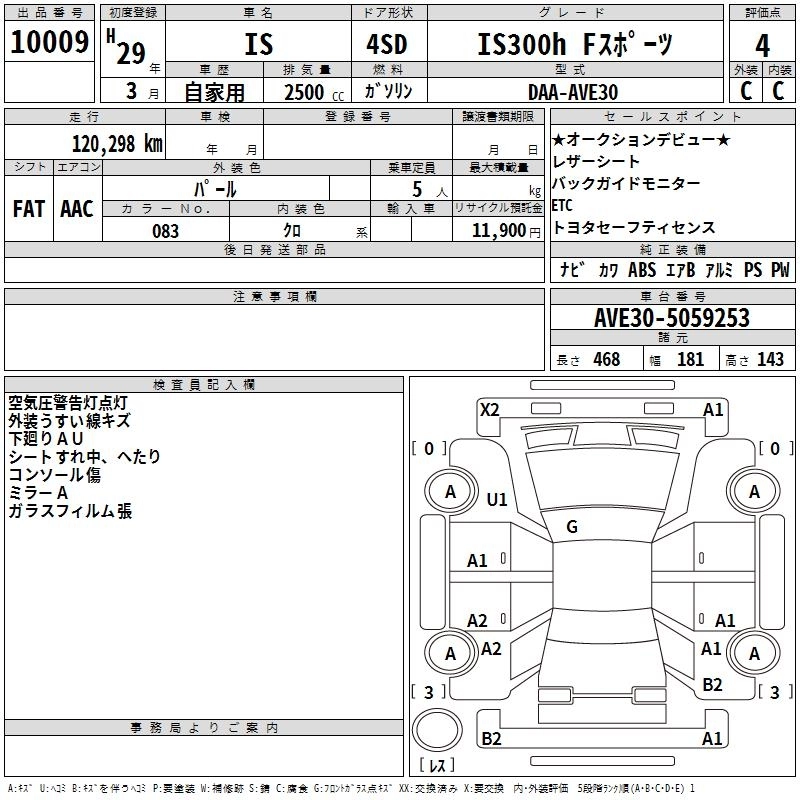 Год выпуска2017 Пробег 120 000 км КузовAVE30 КомплектацияIS300H F SPORT