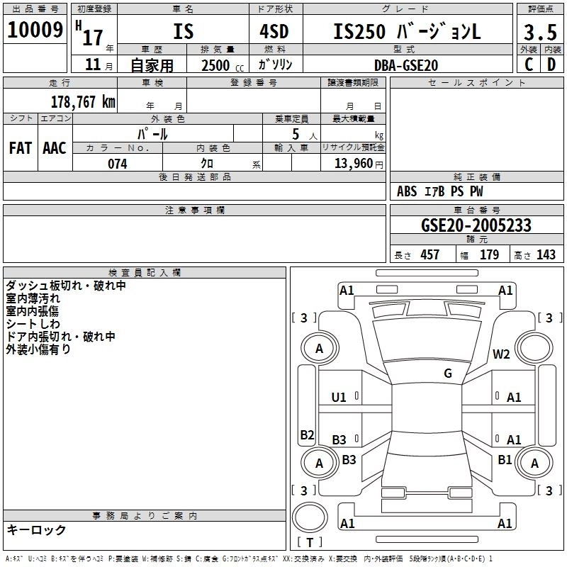 Год выпуска2005 Пробег 179 000 км КузовGSE20 КомплектацияIS250 VERSION L