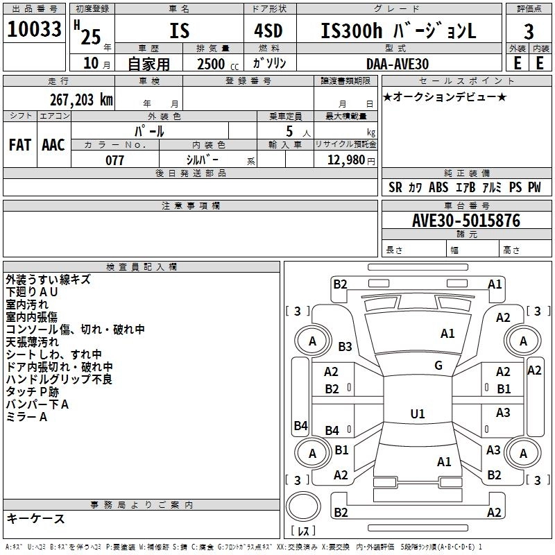 Год выпуска2013 Пробег 267 000 км КузовAVE30 КомплектацияIS300H VERSION L