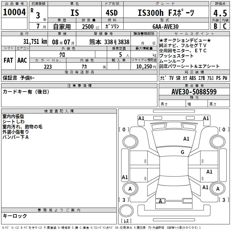 Год выпуска2021 Пробег 32 000 км КузовAVE30 КомплектацияIS300H F SPORT