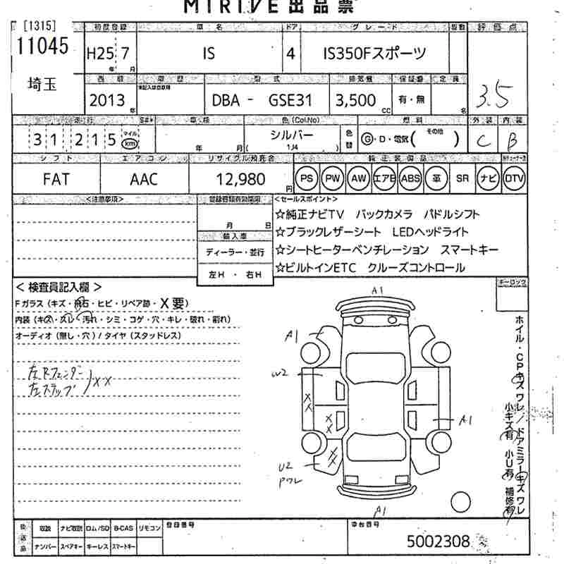 LEXUS IS 2013 г., лот № 11045
