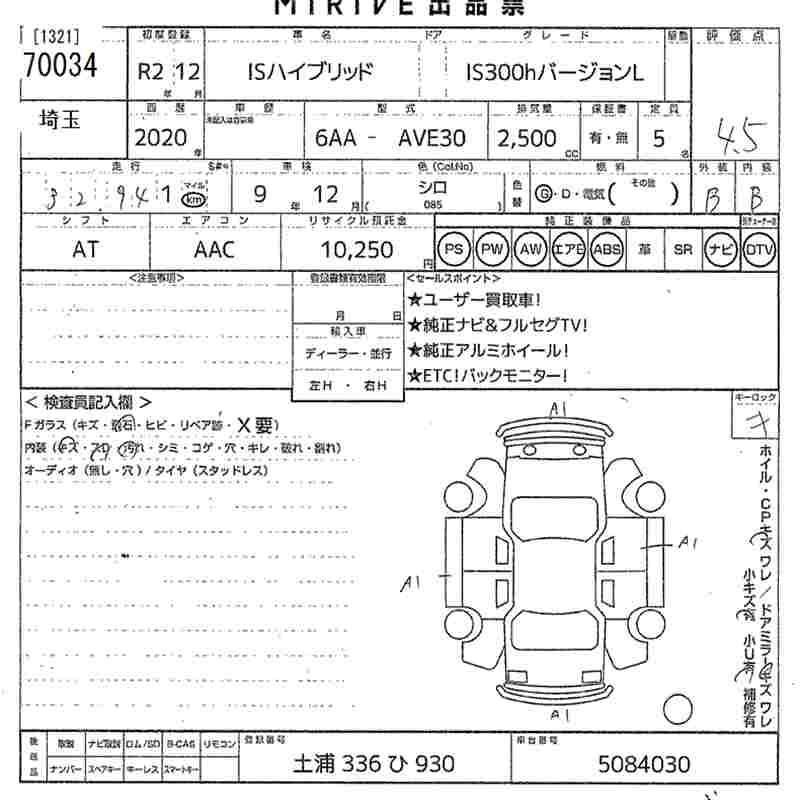 Год выпуска2020 Пробег 33 000 км КузовAVE30 КомплектацияIS300H VERSION L