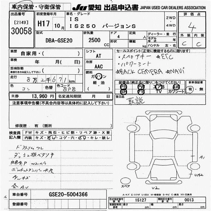 LEXUS IS 2005 г., лот № 30058