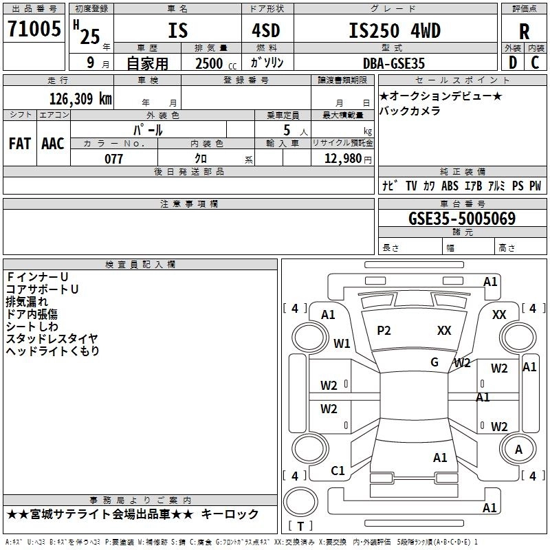 LEXUS IS 2013 г., лот № 71005