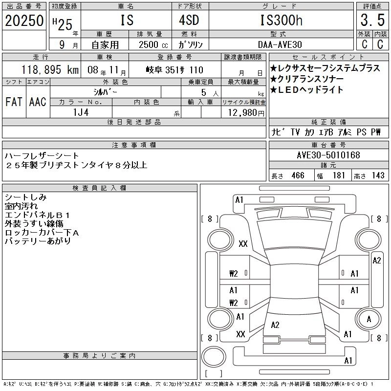 LEXUS IS 2013 г., лот № 20250