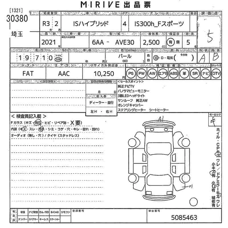 Год выпуска2021 Пробег 20 000 км КузовAVE30 КомплектацияIS300H_F SPORT