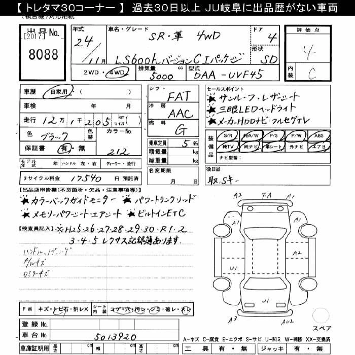 Год выпуска2012 Пробег 121 000 км КузовUVF45 Комплектация4WD VER.C I PACKAGE