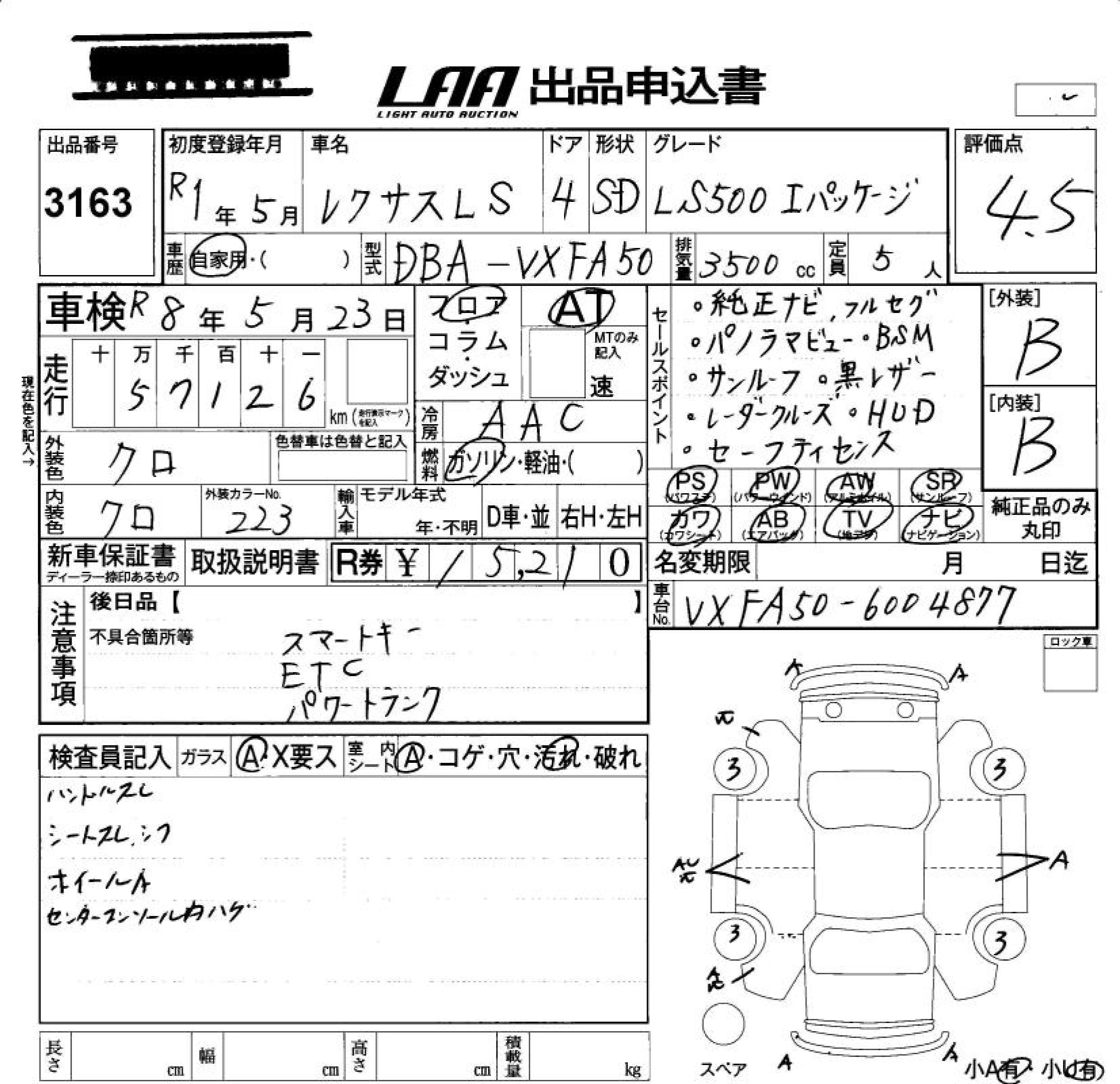 Статус выставлен на аукцион Лот 3163 Аукцион LAA Okayama Дата аукциона 24.10.2025