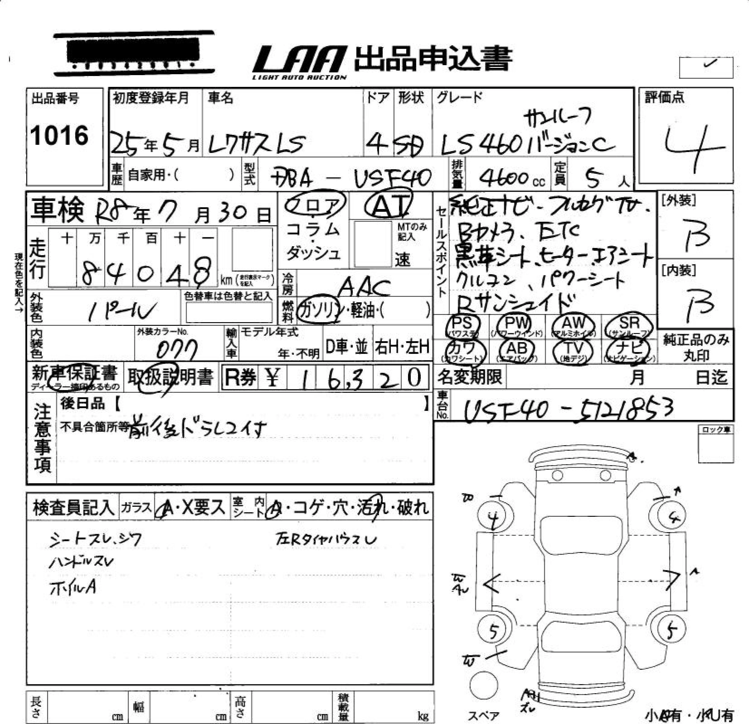 LEXUS LS 2013 г., лот № 1016