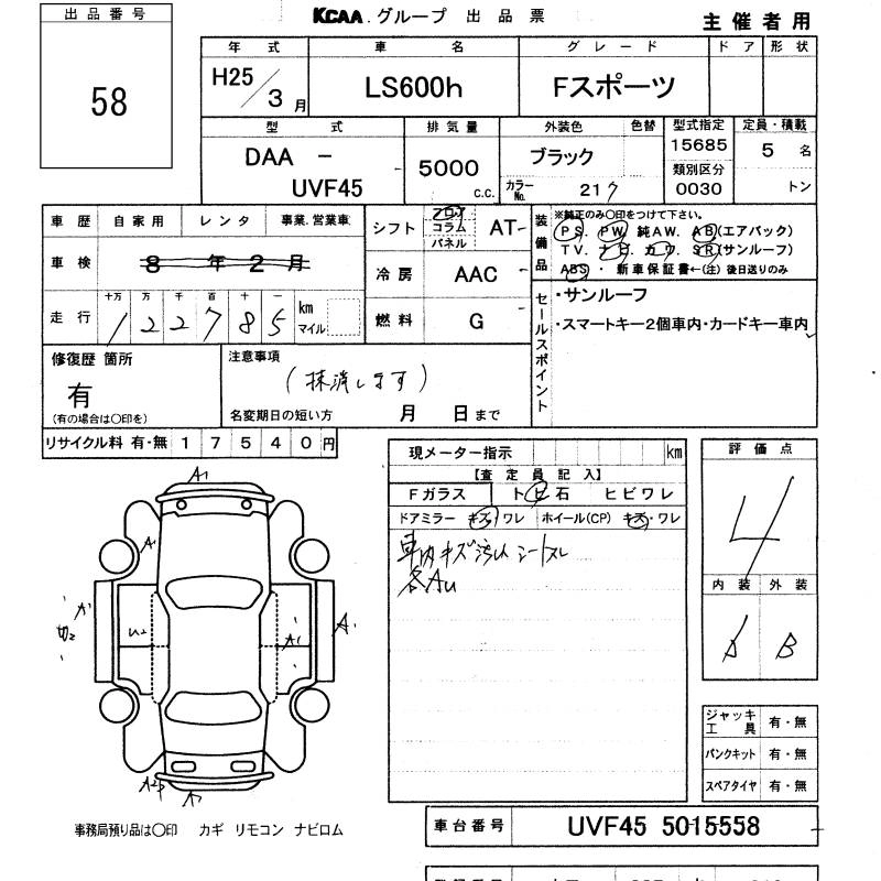 LEXUS LS 2013 г., лот № 58