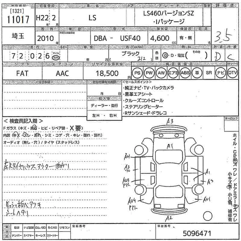 Год выпуска2010 Пробег 72 000 км КузовUSF40 КомплектацияLS460 VERSION SZ*I PACKAGE