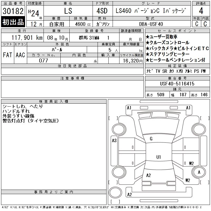 LEXUS LS 2012 г., лот № 30182