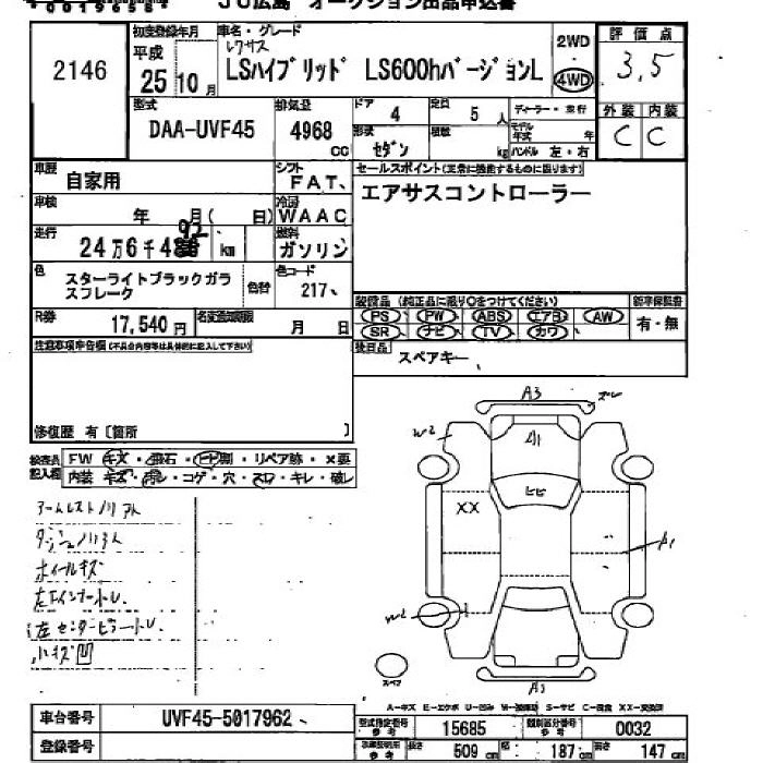 LEXUS LS 2013 г., лот № 2146