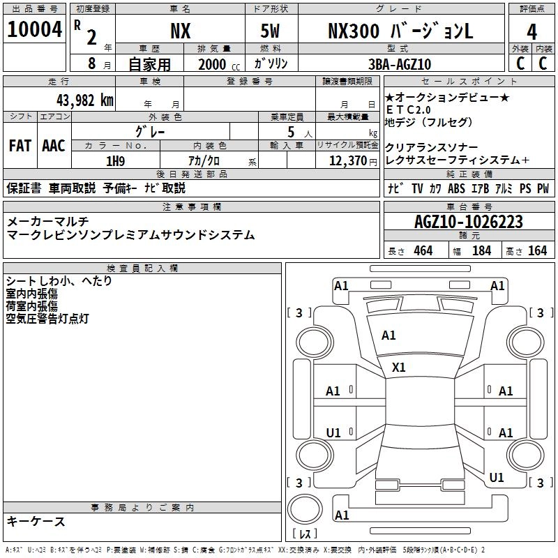 Год выпуска2020 Пробег 44 000 км КузовAGZ10 КомплектацияNX300 VERSION L